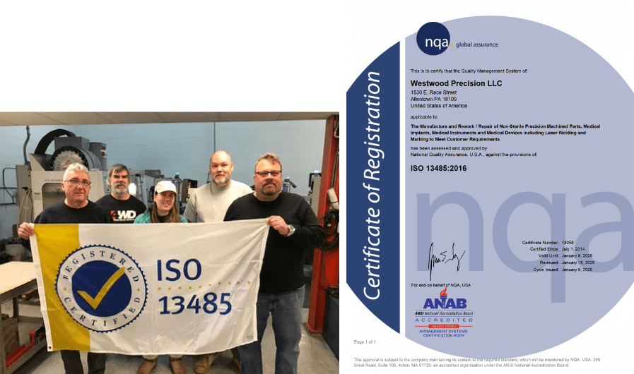 Our mission is to provide our customers with the very best quality parts, components, assemblies, and instruments possible. With over 82 years combined experience, our craftsmen have the knowledge and dedication to provide just that. Our Facility is ISO 13485:2016 compliant and certified, meaning that even medical devices, which require the highest level of precision and care, are within your reach when you work with Westwood Precision.
